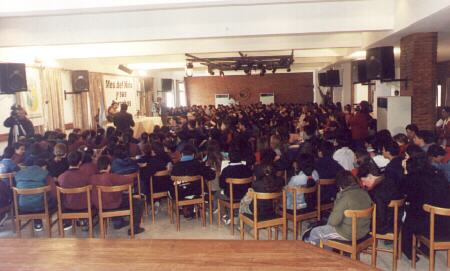 ![]() Vista general del Plenario realizado el 7 de setiembre de 2000, en el Salón del Hotel Intersur de Villa Gesell. Estuvieron presentes aproximadamente 300 alumnos del tercer ciclo de EGB de todas las escuelas de Villa Gesell. |