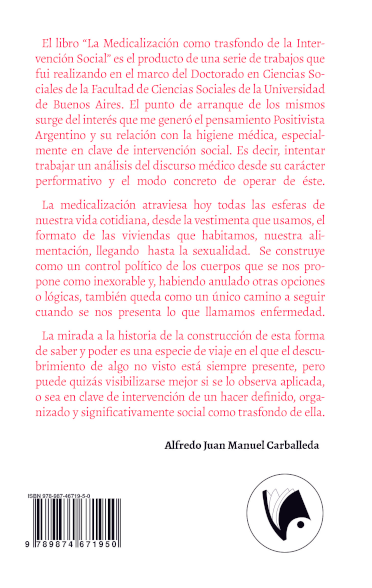 Reseña: Este libro es el producto de una serie de trabajos realizados por el autor en el marco del Doctorado en Ciencias Sociales de la Facultad de Ciencias Sociales de la Universidad de Buenos Aires, a partir del interés hacia el pensamiento Positivista Argentino y su relación con la higiene médica, especialmente en clave de intervención social.