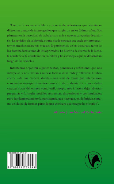 Reseña: Compartimos en este libro una serie de reflexiones que atraviesan diferentes puntos de interrogación que surgieron en los últimos años. La revisión de la historia es una vía de entrada que suele ser interesante y en muchos casos nos muestra la persistencia de los discursos, tanto de los dominadores como de los oprimidos. La historia da cuenta de la lucha, la resistencia, la construcción colectiva y las estrategias que se desarrollan luego de las derrotas.
